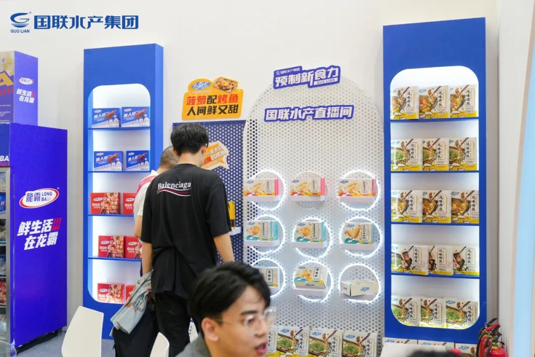 展會上,國聯(lián)水產(chǎn)集團(tuán)展位在延續(xù)升級獨(dú)具一格的“國聯(lián)藍(lán)”的基礎(chǔ)上,巧妙融入龍霸、小霸龍兩大品牌視覺設(shè)計(jì),以多重消費(fèi)場景為靈感,聚焦八大超人氣預(yù)制菜,并特設(shè)品牌專區(qū)陳列,搭建靈活時(shí)尚的活動(dòng)走線,讓所有前來的參觀者都能感受到國聯(lián)水產(chǎn)集團(tuán)在萬億級預(yù)制菜賽道的“新食力”和領(lǐng)軍未來的決心!展位前人頭攢動(dòng),贊美、咨詢聲不絕于耳。