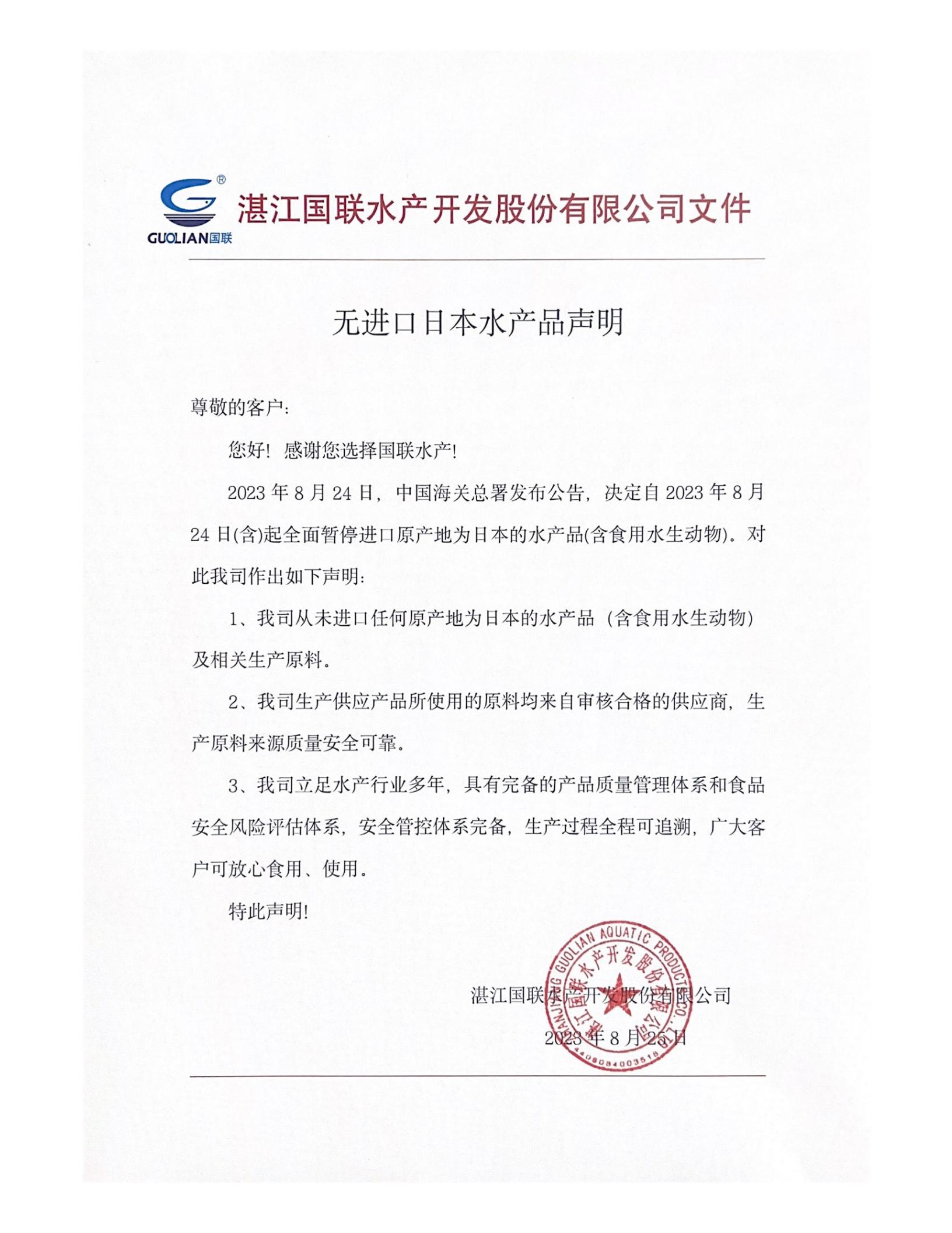 無進(jìn)口日本水產(chǎn)品聲明.pdf
