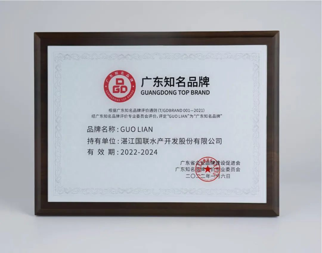 國聯水產集團榮獲“廣東知名品牌"獎牌