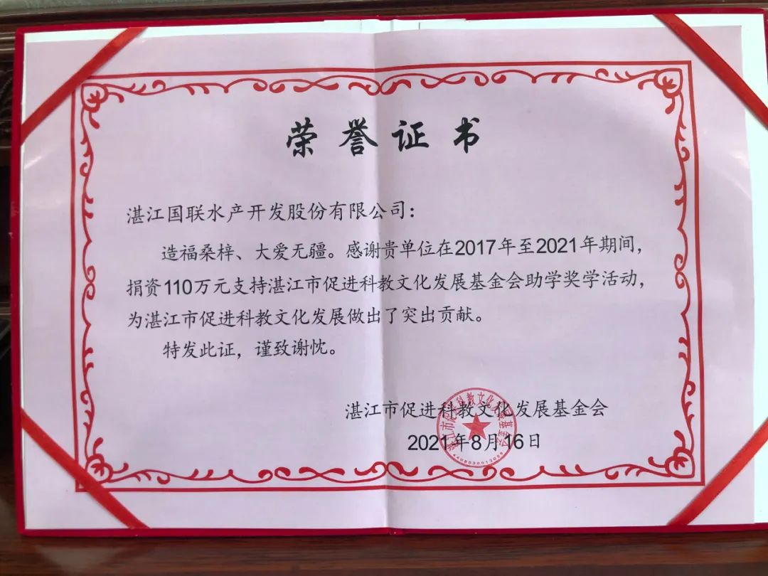 扶貧先扶志,扶貧重扶智。據(jù)悉,國聯(lián)水產(chǎn)集團先后共捐贈慈善公益項目約4000多萬元。2021年,國聯(lián)水產(chǎn)集團向湛江市促進科教文化發(fā)展基金會捐款110萬元,為湛江科教文化發(fā)展盡心盡力。愛心無止境,公益事業(yè)亦無止境。未來,國聯(lián)水產(chǎn)集團始終如一,將源源不斷的輸出愛心,聚沙成塔,以愛心繼續(xù)溫暖中華大地!